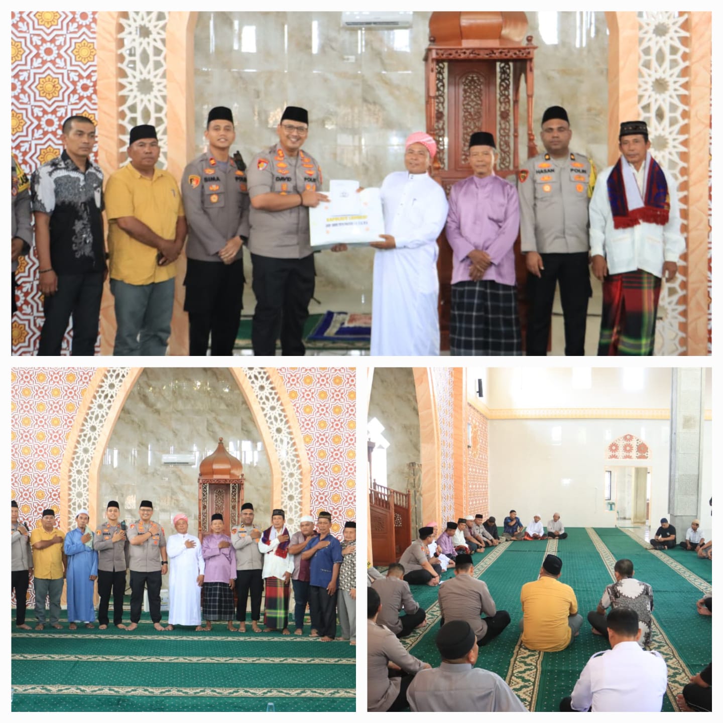 Kegiatan yang berlangsung penuh keakraban ini turut dihadiri jajaran pejabat utama Polres Langkat, di antaranya Kabag Ops Kompol Abdul Rahman, Kabag Sumda Kompol M. Hasan, Kasat Samapta AKP Syahril, Kasat Binmas AKP M. Sebayang, Kapolsek Salapian IPTU M. K. Bima Prakasa, Camat Salapian Ramlan Tarigan, personel Polres dan Polsek Salapian, pengurus BKM Masjid Raya Naman Jahe, serta para jamaah.