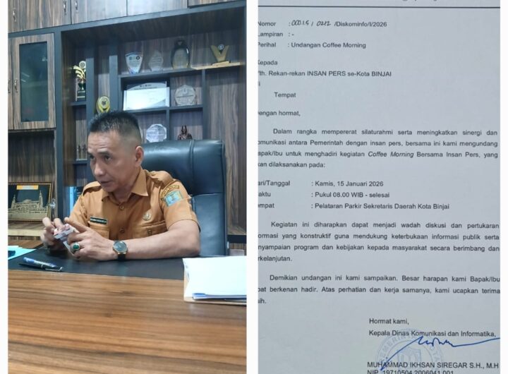 KitaMonitor – BINJAI | Dinas Komunikasi dan Informatika (Kominfo) Kota Binjai menggelar kegiatan Coffee Morning bersama wartawan pada Kamis, 15 Januari 2026. Kegiatan ini mengusung tema Coffee Morning bersama seluruh insan pers Kota Binjai. Acara tersebut mengundang seluruh wartawan yang bertugas di Kota Binjai dari berbagai media cetak, online, dan elektronik. Kegiatan ini bertujuan untuk menjalin silaturahmi antara Dinas...